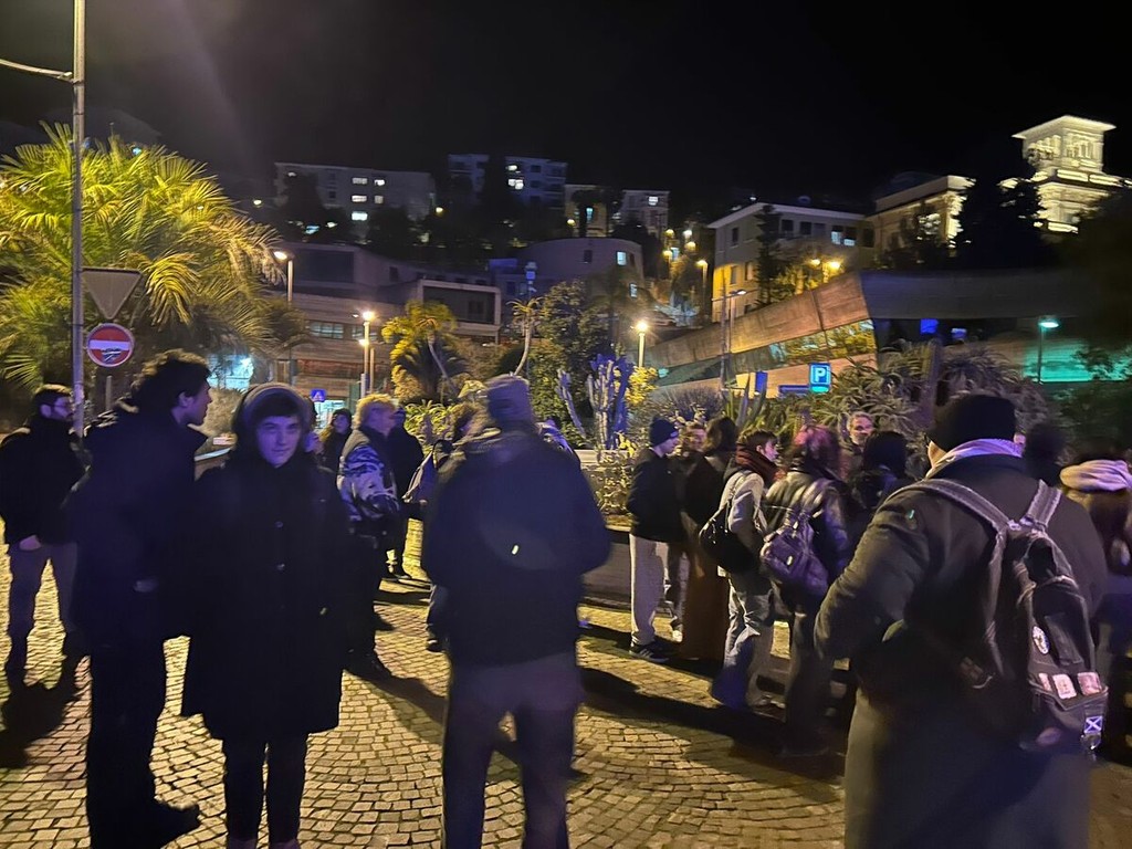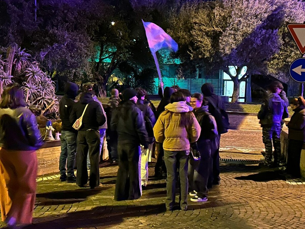 Proprio allo scoccare dell’ora, una quarantina di persone, in larga parte giovani, si è riunita con l’obiettivo di “oscurare il rintocco” attraverso musica ad alto volume, cori e rumore, dando vita a una manifestazione partecipata e determinata. Il presidio si è svolto senza spostamenti, mantenendo come punto di riferimento l’area antistante la stazione.
