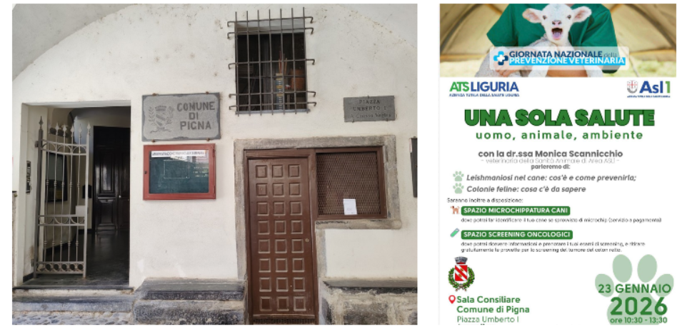 "Una sola salute: uomo, animale, ambiente" sarà il tema al centro dell'incontro informativo, a ingresso libero, in programma venerdì 23 gennaio, dalle 10.30 alle 13.30, nella sala consiliare del comune di Pigna, in piazza Umberto I.