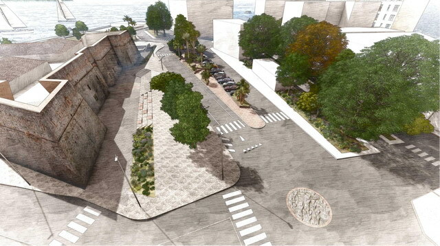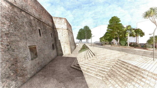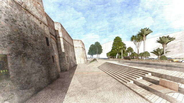 Il progetto prevede la riqualificazione dell’ingresso e delle aree esterne affacciate sui Giardini Vittorio Veneto e su Pian di Nave, con la creazione di uno spazio raccolto e accogliente, pensato come punto d’incontro per cittadini e visitatori. Successivamente si interverrà anche sul cortile cosiddetto “dell’ora d’aria”, nell’ottica di una restituzione alla città di spazi storicamente chiusi. L’intervento si ispira al ritorno all’immagine originaria del Forte, proprio nell’anno del 270° anniversario della sua costruzione (1756). Attraverso lo studio di fonti bibliografiche e planimetrie storiche è stata ricostruita la conformazione originale del complesso, che in origine era circondato da un fossato, successivamente interrato nella seconda metà dell’Ottocento.