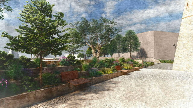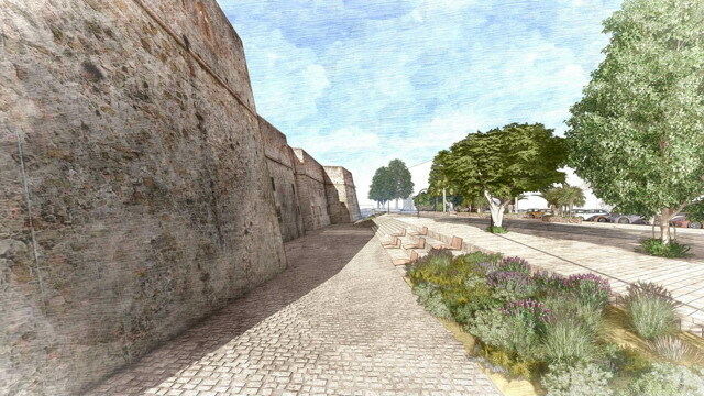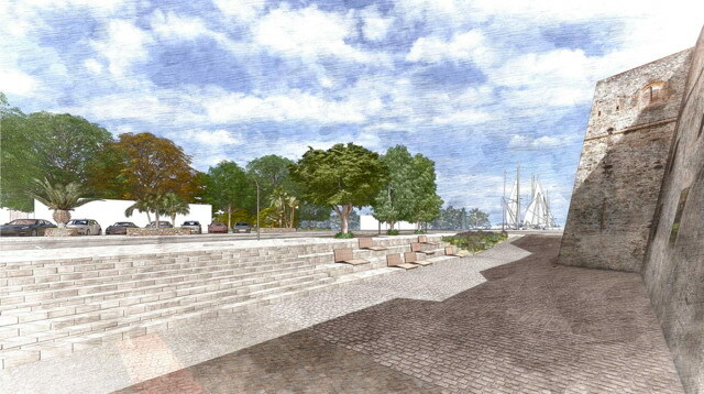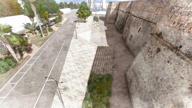 Il progetto comprende anche la valorizzazione dell’area archeologica, resa visibile lungo il percorso perimetrale grazie a un parapetto vetrato, e il rinnovo dell’illuminazione con corpi LED, più efficienti e sostenibili. Ampio spazio sarà dato anche al verde urbano: saranno mantenuti gli alberi esistenti, come ficus e olivi, mentre nuove piantumazioni – tra cui due carrubi nel cortile principale – garantiranno ombreggiatura e qualità ambientale. Le nuove aree verdi saranno trattate a prato e arricchite con specie mediterranee a bassa manutenzione.