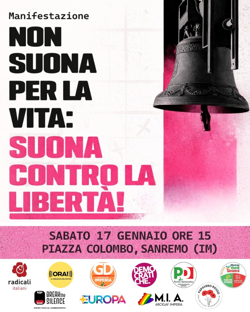 Si accende il clima politico e sociale nella Città dei Fiori in vista di sabato prossimo. Al centro della contesa c'è la "Campana per la Vita", l'iniziativa voluta dal Vescovo della Diocesi di Ventimiglia-Sanremo, Mons. Antonio Suetta, dedicata ai feti mai nati. Un gesto che ha scatenato una dura reazione da parte di un vasto fronte di partiti e associazioni laiche, pronti a scendere in piazza Colombo alle 15.