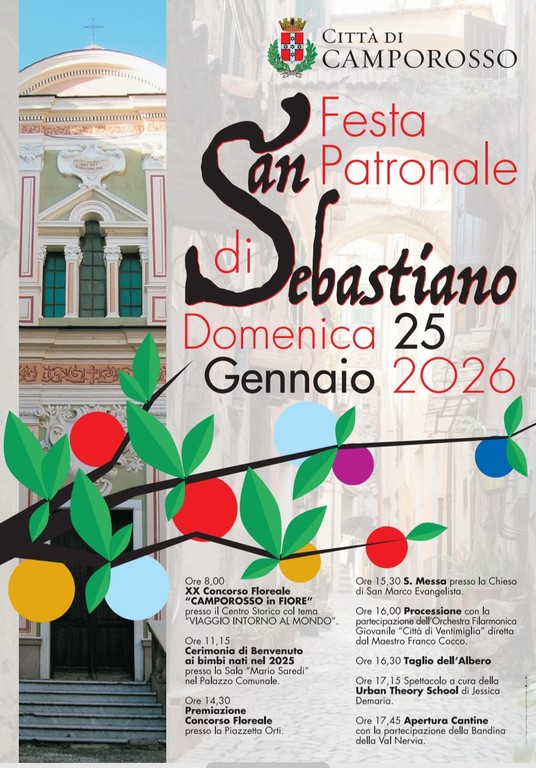 L'evento inizierà alle 8 con il XX concorso floreale 'Camporosso in fiore', che quest'anno avrà come tema 'Viaggio intorno al mondo', presso il centro storico mentre alle 11.15 vi sarà la cerimonia di benvenuto ai bimbi nati nel 2025 presso la sala Mario Saredi nel palazzo comunale. "Domenica 25 gennaio ricorrono i festeggiamenti dedicati al nostro patrono: San Sebastiano. E' una ricorrenza ormai più che centenaria, negli archivi storici si trovano tracce di questa tradizione già nel '600 e rappresenta una giornata di unione che vede coinvolti tantissimi cittadini e visitatori di ogni età" - fa sapere l'assessore Rosella Gastaldo - "Cominceremo al mattino con l'accoglienza istituzionale ai nati del 2025. Saranno, infatti, ospitati nel palazzo comunale come ogni anno i nati dell'anno appena concluso, per i saluti ufficiali e la consegna del benvenuto da parte di tutta l'amministrazione comunale".