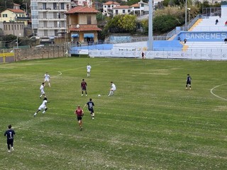 4' entrambe le squadre propositive, gli ospiti giocano a lanci lunghi, la Sanremese prova a costruire