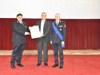 Nel corso della mattinata sono state inoltre consegnate le benemerenze, momento particolarmente sentito delle celebrazioni di San Sebastiano. I riconoscimenti sono stati assegnati a Carlo Boeri, premiato dal presidente del Consiglio comunale Alessandro Il Grande, a Davide Gorga, che ha ricevuto la benemerenza dal viceprefetto Anna De Paola, e a Massimo Marchetto, premiato dal sindaco Alessandro Mager. Un riconoscimento congiunto è stato inoltre conferito a Marisa Tomaselli ed Enzo Marin, premiati dal questore Andrea Lo Iacono. Nel corso della cerimonia è stato infine premiato anche Marco Corradi, vice commissario della Polizia di Stato, a sottolineare il valore della collaborazione e dell’impegno condiviso tra le diverse forze impegnate nella sicurezza del territorio.