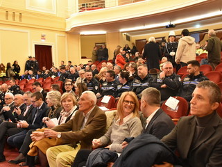 Durante gli interventi istituzionali non sono mancati i ringraziamenti e i riconoscimenti. Il sindaco Alessandro Mager ha rimarcato il rapporto di collaborazione costante con il Corpo: “Ho un’interlocuzione continua con il comandante Fulvio Asconio, con la vicecomandante Erica Biondi Zoccai e con gli ufficiali. Ho sempre trovato persone concrete, responsabili e attente. Professionalità, disponibilità e concretezza sono valori presenti nella nostra Polizia Locale”. Il primo cittadino ha poi ricordato l’importanza della sinergia con le altre forze dell’ordine, l’impegno sulle ordinanze anti-alcol, che hanno contribuito a ridurre le criticità nel centro cittadino, e il lavoro svolto durante il Festival, definito “un grande successo sul piano viabilistico e dell’ordine pubblico”. “Non ci siamo limitati alle sanzioni – ha aggiunto – ma abbiamo operato su ambiente, rifiuti, polizia giudiziaria e servizi alla cittadinanza”. Mauro Menozzi, in rappresentanza del Casinò, ha sottolineato: “Siamo onorati di festeggiare questo appuntamento nel nostro teatro, che negli anni ha accolto numerose iniziative della Polizia Locale”.