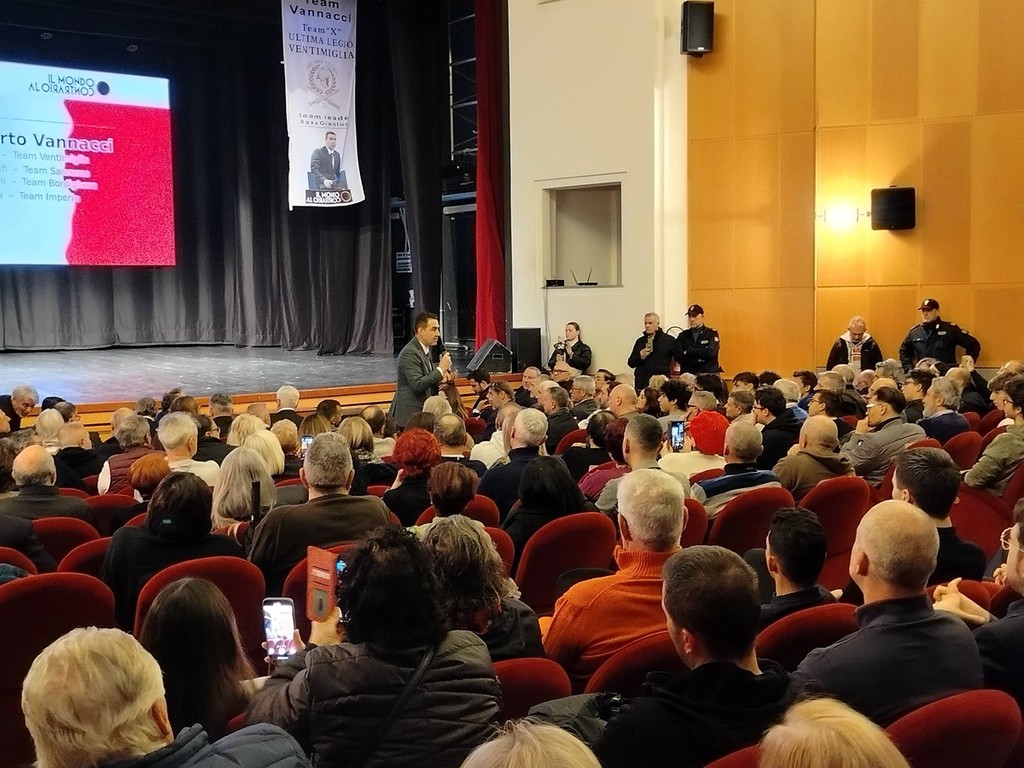"La sicurezza non è un diritto, è il diritto. Senza sicurezza le società non si sarebbero create. Senza sicurezza i gruppi sociali non si sarebbero sviluppati. L'economia, la scuola, la ricerca, l'università non si sarebbero creati senza sicurezza. Dove non c'è sicurezza non cresce niente. E' il diritto che prelude a tutti gli altri diritti" - dice il generale ed europarlamentare Roberto Vannacci nel corso dell'incontro pubblico dal titolo “Sicurezza non è uno slogan. È un diritto”, andato in scena in serata al teatro comunale a Ventimiglia.