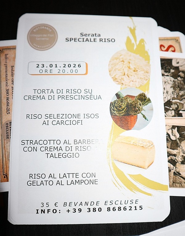 Il Villaggio dei Fiori di Sanremo ha ospitato l’ultimo appuntamento del ciclo invernale della propria rassegna gastronomica, chiudendo la stagione con una cena evento dedicata al Riso Carnaroli, che ha registrato il tutto esaurito. Una serata che ha intrecciato enogastronomia, narrazione e cultura del territorio, trasformando la cena in un’esperienza completa, molto partecipata dal pubblico.