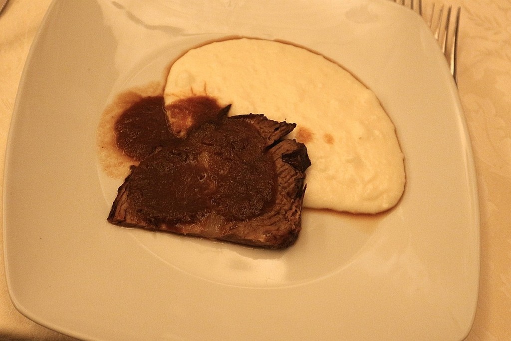 Il secondo ha visto protagonista uno stracotto al Barbera con crema di riso Carnaroli al Taleggio, preparazione avvolgente in cui la profondità del vino e del formaggio ha dialogato con la delicatezza del riso. In chiusura, un riso al latte con gelato al lampone, dessert essenziale e rassicurante, alleggerito da una nota fresca e fruttata.