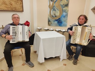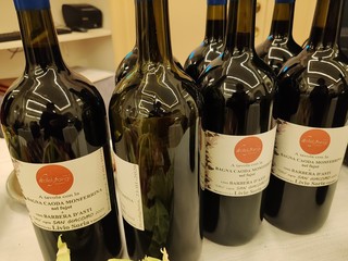 Sono stati poi serviti i Batsoà, "le calze di seta", insaporite e fritte ma la portata principale è stata la bagna caoda monferrina nel fujot, con i “ciapinabò” di Carignano, i cardi gobbi di Nizza Monferrato, i “Puvrun" di Carmagnola, Muja nelle vinacce di Barbera D'Asti con tutto il “carosello“ di verdure invernali dell'orto, cotte e crude. Si sono potuti provare anche mini involtini di Fassona con fontina Dop della valle d'Aosta e le uova del primo coccodè strapazzate nel fujot. Il tutto accompagnato con un Barbera di Calosso d’Asti 2025 en Primeur della vendemmia 2025, spillato direttamente dal fusto nella cantina L.A. Soria.