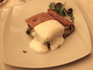 Il menù si è aperto con una torta di riso Carnaroli su crema di prescinsêua, rilettura di un classico ligure in cui il riso ha donato struttura e naturale cremosità, bilanciata dalla freschezza del latticino.