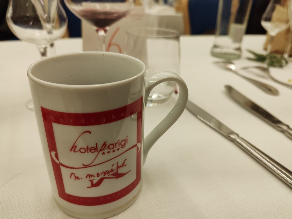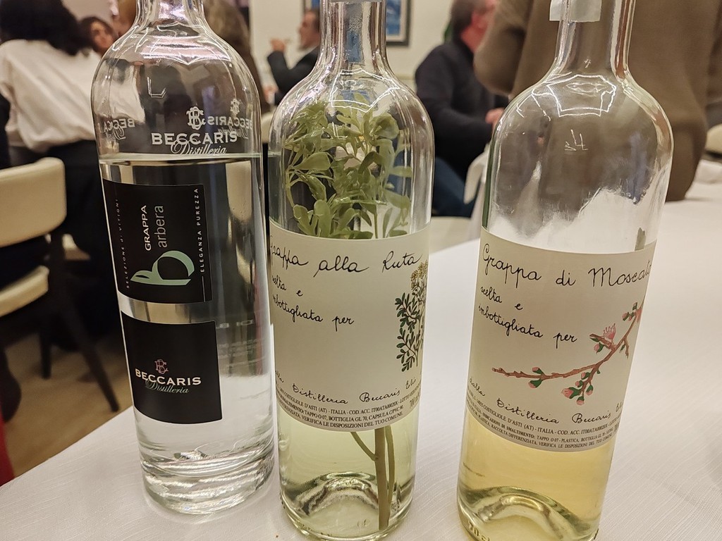 Dopo un tazzone di buon brodo caldo di carne, conciato e aromatizzato al vino Barbera d'Asti Riserva Cantina L.A. Soria di Calosso d'Asti, si è proseguito con Castel Ariund d'alpeggio erborinato da latte vaccino del caseificio valle Gesso di Entracque e l'introvabile mostarda Cognà di casa Sattanino alle mele cotogne e mosto di moscato ridotto. La cena si è conclusa con la “Torta di Nonna Gilda”, torta di mele dimenticata al forno quanto basta, con gelato alla vaniglia del Madagascar e il “Bicerin” di Camillo Benso Conte di Cavour, il caffè della consolata di Torino sin dal 1763, accompagnato dal “Dolcearoma” da uve Moscato, Calosso d'Asti cantina L.A. Soria, e una grappa di Moscato, di Barbera e alla Ruta della distilleria Beccaris.