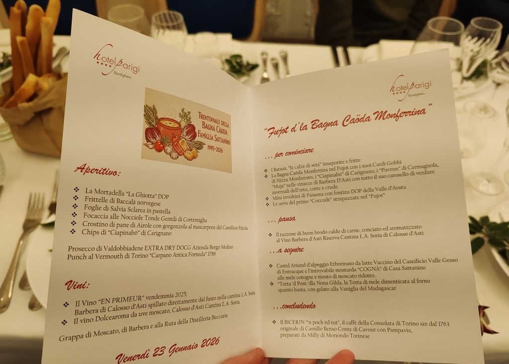 Convivialità, musica dal vivo, vini e prelibatezze. L'hotel Parigi a Bordighera ospita la trentennale della bagna caoda della famiglia Sattanino. Ieri sera, un centinaio di persone hanno potuto degustare, in un clima di amicizia, ottimi vini e specialità piemontesi.