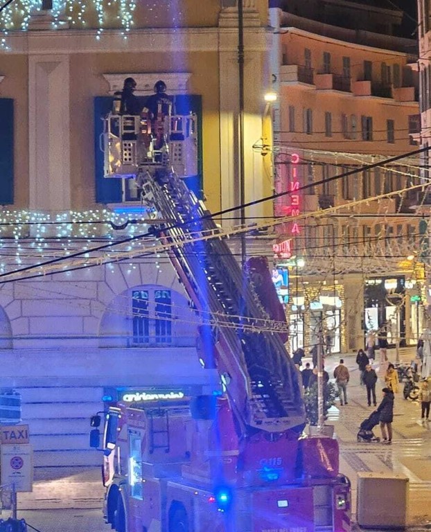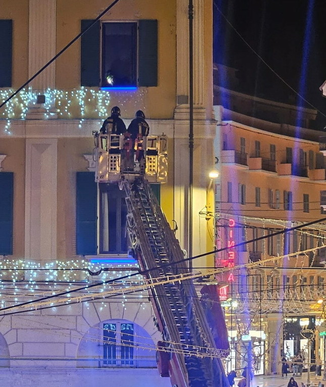 Principio di incendio nel bagno di una camera dell’hotel Globo di piazza Colombo a Sanremo. Sul posto sono prontamente intervenuti i Vigili del Fuoco del distaccamento di via San Francesco con l’autoscala.