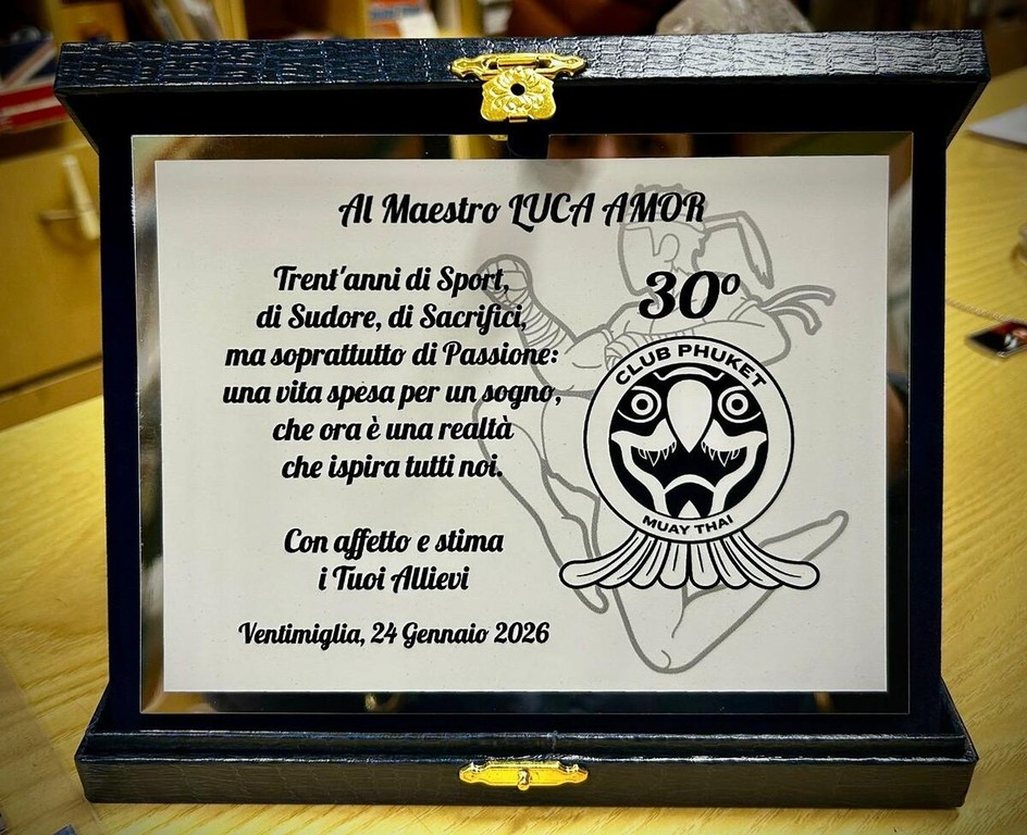 Ventimiglia ha celebrato i 30 anni di attività del Club Phuket Muay Thai con una festa a sorpresa organizzata dagli allievi e dai genitori della palestra fondata e guidata dal maestro Luca Amor. Un evento tenuto segreto fino all’ultimo, nato come gesto di riconoscenza per il lavoro svolto in questi trent’anni.
