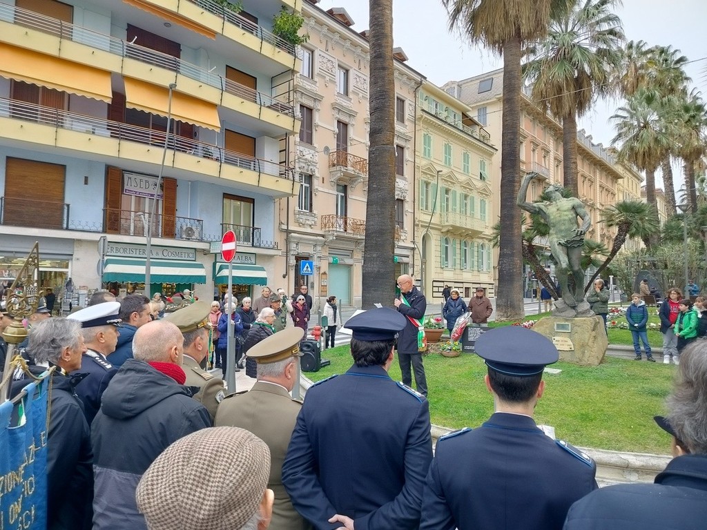 La commemorazione è iniziata alle ore 10.30 con una cerimonia al Monumento ai Caduti di Cefalonia e presso la lapide dedicata agli Internati Militari Italiani, nei giardini di corso Mombello. Un momento di profondo raccoglimento in memoria dei militari sanremesi internati nei lager nazisti, alla presenza delle autorità civili e militari.