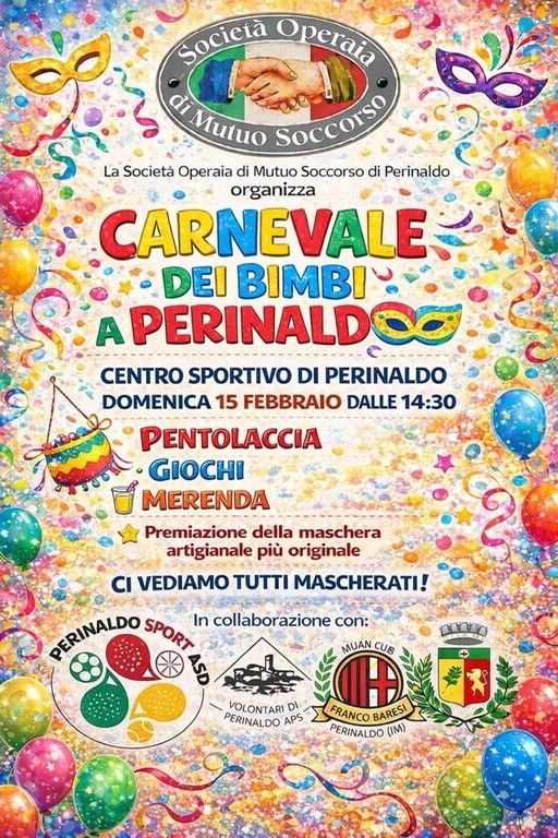 L'evento è proposto dalla Società operaia di mutuo soccorso di Perinaldo in collaborazione con Perinaldo Sport Ads, volontari di Perinaldo Aps, Milan club Franco Baresi e il Comune. "Ci vediamo tutti mascherati" - dicono gli organizzatori - "Vi aspettiamo numerosi".