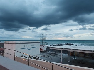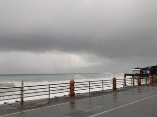 Pioggia e mareggiata si abbattono su Bordighera. La perturbazione ha creato alcuni disagi nella città delle palme: tombini e alcuni sottopassaggi che conducono al mare si sono allagati e così sono stati chiusi al transito pedonale.