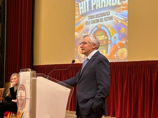 Nel foyer del teatro, inoltre, il pubblico ha potuto visitare la mostra “Auguri Festival”, con cimeli storici originali provenienti dal Museo del Festival curato da Marco Canova, un percorso tra documenti e oggetti che hanno fatto la storia della manifestazione.