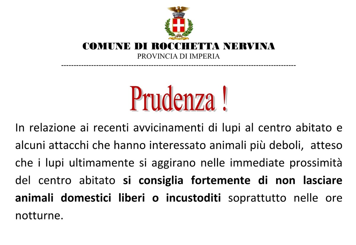 Cresce l’attenzione a Rocchetta Nervina per la presenza sempre più frequente dei lupi nelle immediate vicinanze del centro abitato. Con un avviso ufficiale diffuso dal Comune, il sindaco Claudio Basso ha invitato la popolazione alla massima prudenza, alla luce dei recenti avvicinamenti dei lupi alle abitazioni e di alcuni attacchi che hanno colpito animali domestici più deboli.