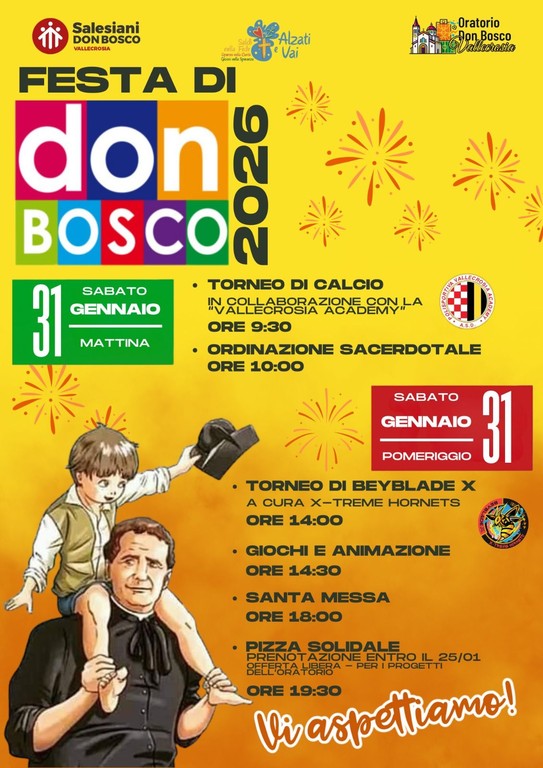 Festa di Don Bosco a Vallecrosia. Domani, sabato 31 gennaio, ai Salesiani Don Bosco verranno proposti momenti di preghiera, tornei, giochi e occasioni di convivialità per festeggiare San Giovanni Bosco, patrono di giovani, educatori e studenti e fondatore dei Salesiani.