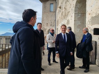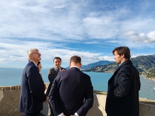 Confronto strategico sul futuro della mobilità transfrontaliera e delle infrastrutture. Un importante incontro istituzionale si è svolto, questa mattina, al Forte dell’Annunziata a Ventimiglia tra l’assessore regionale ai Trasporti Marco Scajola, il vicepresidente incaricato ai Trasporti di Région Sud Jean-Pierre Serrus, il sindaco di Ventimiglia Flavio Di Muro e l'assessore Adriano Catalano.
