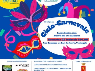 Giochi, laboratori, musica e divertimento. Domenica 22 febbraio alle 14 nell'area Campasso e Oasi del Nervia a Ventimiglia andrà in scena la terza edizione di "Ciclo-Carnevale!".