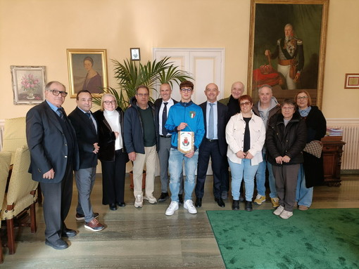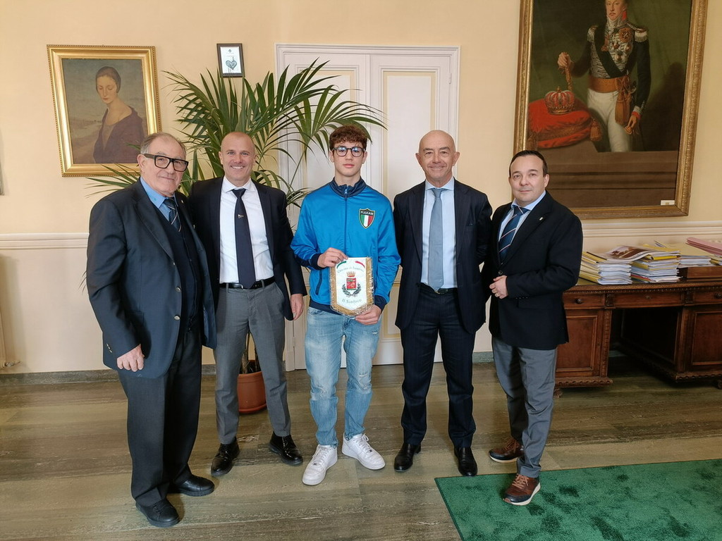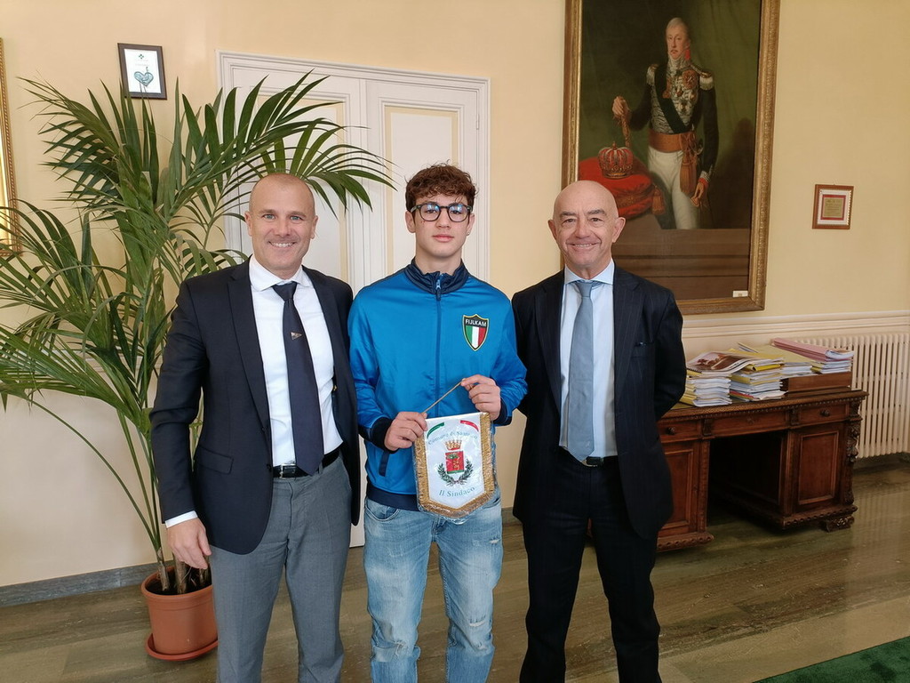 Il sindaco Mager e l’assessore Sindoni hanno ricevuto Mattia Salvi questa mattina a Palazzo Bellevue, consegnandogli un gagliardetto del Comune in segno di riconoscimento per gli importanti traguardi sportivi raggiunti.