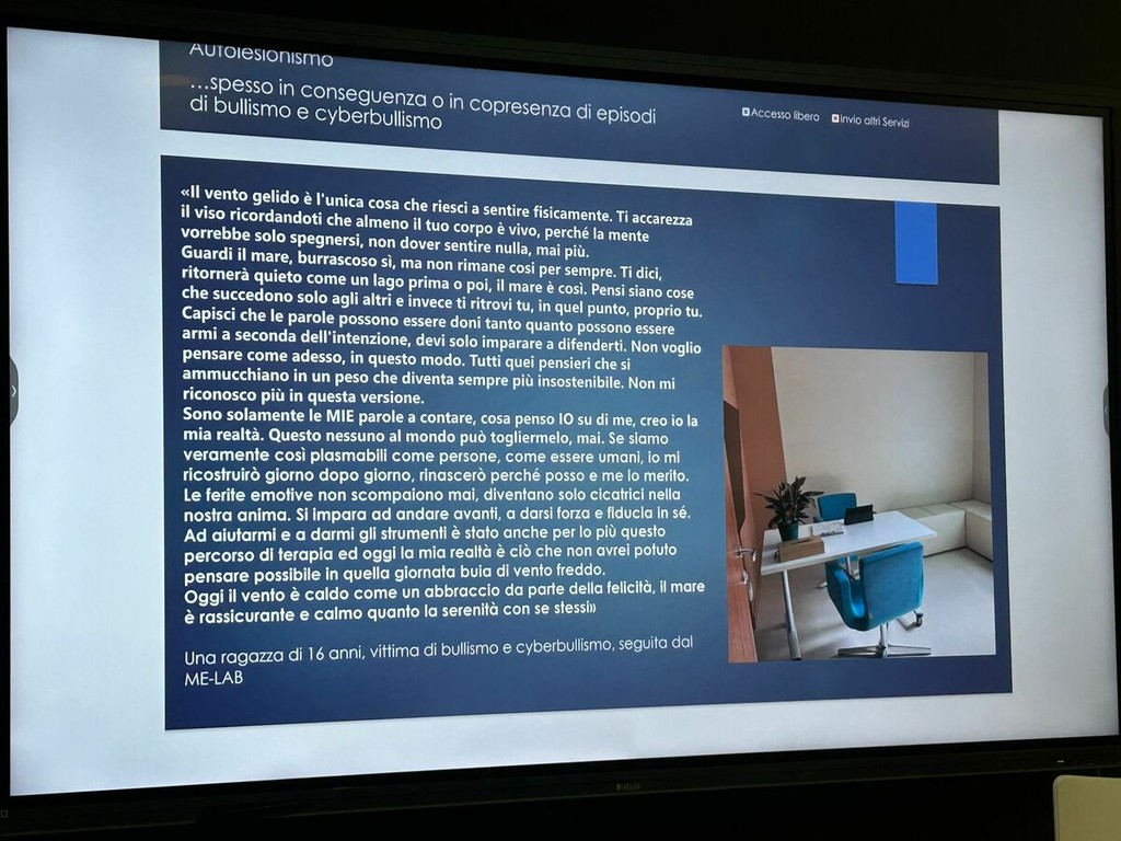In un’epoca in cui il bullismo non finisce con il suono della campanella e il cyberbullismo segue i ragazzi fino dentro le loro stanze, il MeLab rappresenta un presidio unico sul territorio: un luogo in cui tecnologia, ascolto e cura si intrecciano. E dove, come racconta una sedicenne, anche dopo il vento gelido può tornare il mare calmo.