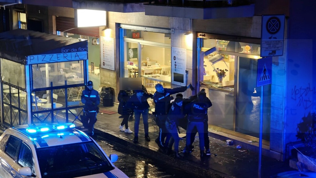 All’esterno del bar i due uomini hanno picchiato violentemente la donna (che lavora all'interno del bar), lasciandola a terra solo all’arrivo di Polizia, Carabinieri e Municipale, che hanno avuto il loro bel daffare per riuscire a fermare i due, letteralmente in trance dalla rabbia, scatenata chissà per quale motivo. I due hanno anche parzialmente distrutto il dehors del bar, rompendo anche alcune vetrine, contro le quali hanno scagliato tavoli e sedie. Al termine di un lungo parapiglia i due sono stati fermati, uno di fronte al bar e l’altro sul piazzale del Borgo dove era fuggito.