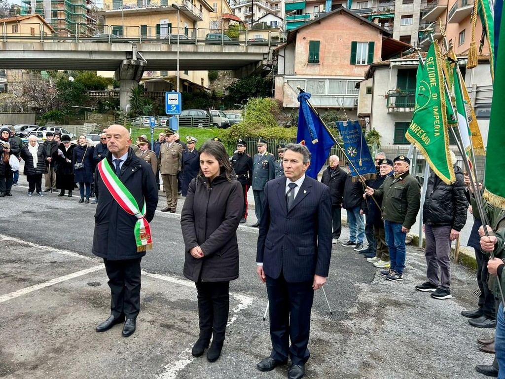 In occasione del Giorno del Ricordo, il Comune di Sanremo, in collaborazione con il Comitato Provinciale di Imperia dell’Associazione Nazionale Venezia Giulia e Dalmazia e con l’Opera Nazionale Caduti senza Croce, ha organizzato una cerimonia commemorativa dedicata alle vittime delle foibe e dell’esodo giuliano-dalmata. L’appuntamento si è svolto oggi alle 16 in via Martiri delle Foibe (lato via San Francesco), luogo simbolo della memoria cittadina. La cerimonia, molto partecipata, si è tenuta alla presenza del sindaco di Sanremo Alessandro Mager, dell’assessore regionale Luca Lombardi e delle massime autorità civili, militari e religiose del territorio.