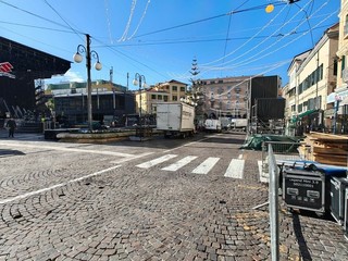 Proseguono anche gli interventi al porto, dove è in fase di realizzazione il glass della Rai sullo scivolo dell’ex cantiere navale. In parallelo avanzano i lavori in piazzale Vesco per l’installazione curata da Radio Kiss Kiss, che contribuirà ad animare ulteriormente la città durante i giorni della kermesse.