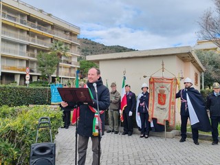 Alla presenza di autorità civili, militari, religiose, associazioni e cittadini si sono svolti l'alzabandiera, la deposizione di una corona d'alloro, l'intervento del consigliere provinciale Gabriele Amarella, il discorso del sindaco Flavio Di Muro, un'orazione ufficiale a cura di Jacopo Leone, membro del Comitato Provinciale dell’Associazione Nazionale Venezia Giulia e Dalmazia di Imperia, e il discorso di Giovanni Chersola, delegato provinciale per Genova dell'Opera nazionale dei caduti senza croce. L'evento è stato organizzato dal Comune in collaborazione con l’Associazione Nazionale Venezia Giulia e Dalmazia e la Delegazione provinciale dell’Opera Nazionale per i Caduti senza Croce.