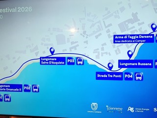 Novità del 2026, le navette realizzate in collaborazione con Comune di Sanremo, Amaie Energia e Sperlari, che permetteranno di collegare i parcheggi creati ad hoc lungo la pista ciclopedonale al centro della città, dove si trovano le attrazioni del Festival. Le navette collegheranno le aree di sosta dedicate - P01 Pian di Poma, P02 Lungomare Vittorio Emanuele II, P03 Lungomare Salvo D’Acquisto, P04 Strada Tre Ponti, P05 Lungomare Bussana e P06 Arma di Taggia Darsena (area camper) - con fermate strategiche intermedie lungo il percorso ciclabile e punti di raccolta vicini alle zone nevralgiche dell’evento. Il capolinea delle navette provenienti dai parcheggi di levante sarà in zona SudEst mentre il capolinea delle navette provenienti dai parcheggi di ponente si troverà presso la vecchia stazione, consentendo così un accesso più agevole e sostenibile al Festival.