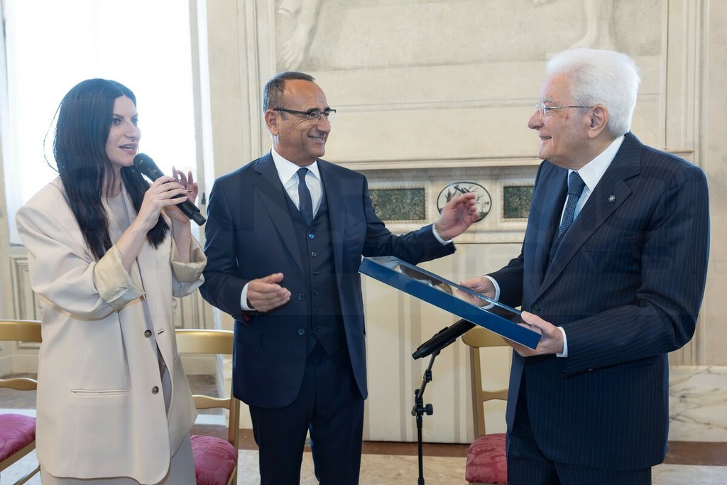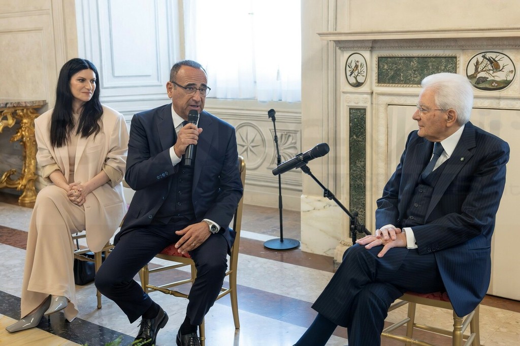 Questa mattina il Presidente della Repubblica Sergio Mattarella ha incontrato al Quirinale i partecipanti della 76ª edizione del Festival di Sanremo. La delegazione era accompagnata dal Conduttore e Direttore Artistico Carlo Conti, dalla Co-conduttrice Laura Pausini e dall’Amministratore Delegato della Rai Giampaolo Rossi.