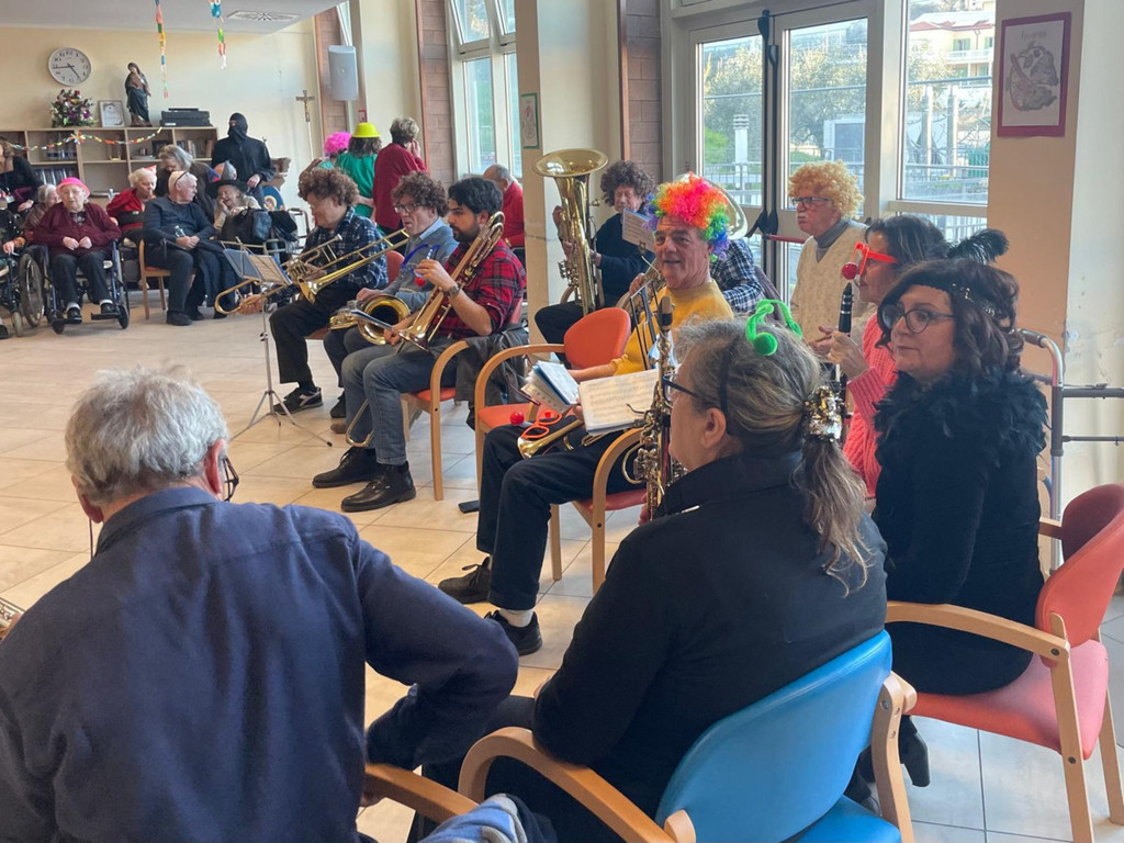 Nel pomeriggio del 16 febbraio 2026, gli ospiti della RSA Ospedale di Carità Onlus di Taggia hanno avuto l’opportunità di immergersi nell’atmosfera gioiosa del Carnevale grazie alla musica della Banda cittadina “Pasquale Anfossi”.