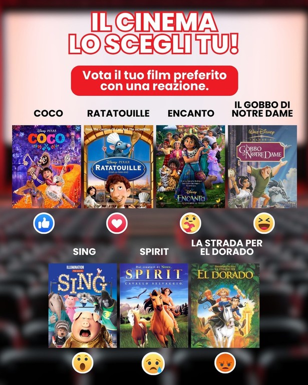 Per poter partecipare basta lasciare la reazione, emoji, corrispondente al film che si preferisce sulla pagina Facebook del Comune di Ventimiglia e i più votati alla fine verranno proiettati al teatro comunale. "Come funziona? Basta lasciare la reazione corrispondente al vostro film preferito in assoluto. I più votati formeranno il programma ufficiale" - spiegano dal Comune - "I candidati Disney sono Coco, Ratatouille, Encanto e Il Gobbo di Notre Dame mentre tra i candidati non Disney vi sono Sing, Spirit - Il cavallo selvaggio e La strada di El Dorado. Votate subito e taggate gli amici nei commenti per far vincere i vostri film del cuore!".