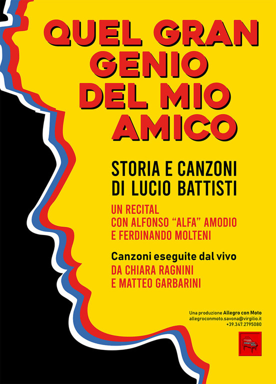 Venerdì 6 marzo alle ore 21:00 il Teatro dell’Albero di San Lorenzo al Mare (IM) ospiterà “Quel gran genio del mio amico – Storia e canzoni di Lucio Battisti”, recital musicale scritto da Ferdinando Molteni e interpretato da Alfonso “Alfa” Amodio e Ferdinando Molteni, con le canzoni eseguite dal vivo da Chiara Ragnini e Matteo Garbarini.