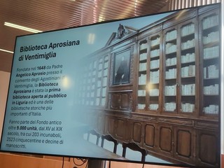Fondata nel 1648 da Padre Angelico Aprosio presso il convento degli Agostiniani di Ventimiglia, la Biblioteca Aprosiana è stata la prima biblioteca aperta al pubblico in Liguria ed è una delle biblioteche storiche più importanti d’Italia. "Sono particolarmente emozionato perché penso sia il restauro più importante a Ventimiglia che riguarda i volumi della biblioteca Aprosiana" - dice il sindaco Flavio Di Muro - "Ci fa particolarmente piacere che la filiera culturale sia attiva nel sostenere il volano del turismo. Ringrazio i presenti anche per il lavoro che faranno nei prossimi giorni. E' un'iniziativa che rientra in una programmazione più ampia voluta dall'Amministrazione comunale che vede la cultura come integrazione sociale, interesse per i giovani e volano turistico. Ventimiglia è una città che vanta tutti i profili e retaggi storici che hanno accompagnato il mondo intero. Per noi è un vanto incredibile mantenerlo ed è, infatti, la sfida più importante che abbiamo: creare una Ventimiglia più culturale che lavora anche sul futuro. L'obiettivo è, infatti, quello di creare un vero e proprio polo museale nell'Area di Nervia. Stiamo lavorando per mettere degli stalli per i pullman. Siamo in un'area in cui vi è già un museo. Sto lavorando con il sindaco di Pigna, il Demanio e gli enti per l'acquisizione dal Ministero della Cultura dell'ex ospedale di Ventimiglia per creare un vero e proprio polo museale che non ha pari in tutta la provincia di Imperia".
