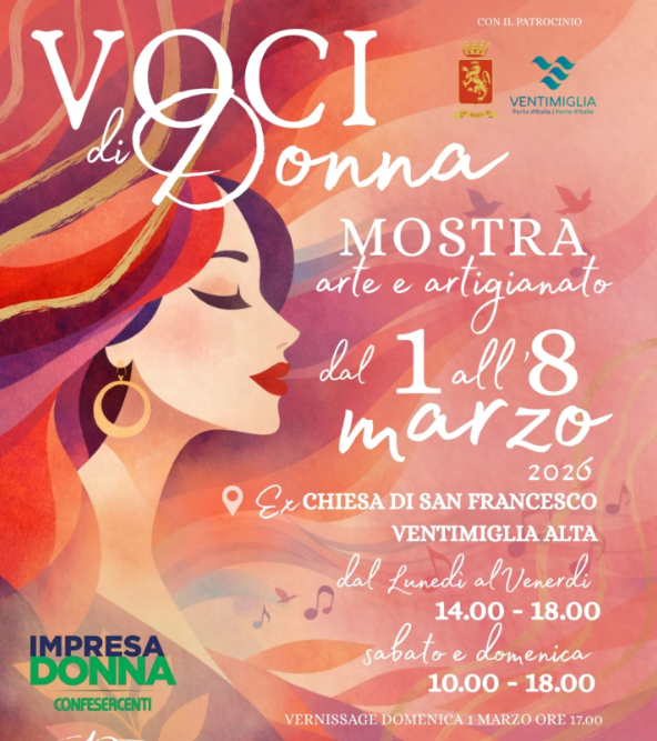 Il vernissage inaugurale è previsto il 1° marzo alle 17 ma la mostra, a ingresso gratuito, si potrà ammirare dal lunedì al venerdì dalle 14 alle 10 mentre il sabato e la domenica dalle 10 alle 18. "Si tratta di un percorso corale che intreccia pittura, scultura, fotografia, artigianato artistico, installazioni e parole, dando forma alle molteplici sfumature della donna: forza e fragilità, memoria e visione, radice e trasformazione" - fanno sapere gli organizzatori - "Non una semplice celebrazione ma un viaggio fatto di emozioni, ascolto e bellezza condivisa nel cuore suggestivo di Ventimiglia Alta".