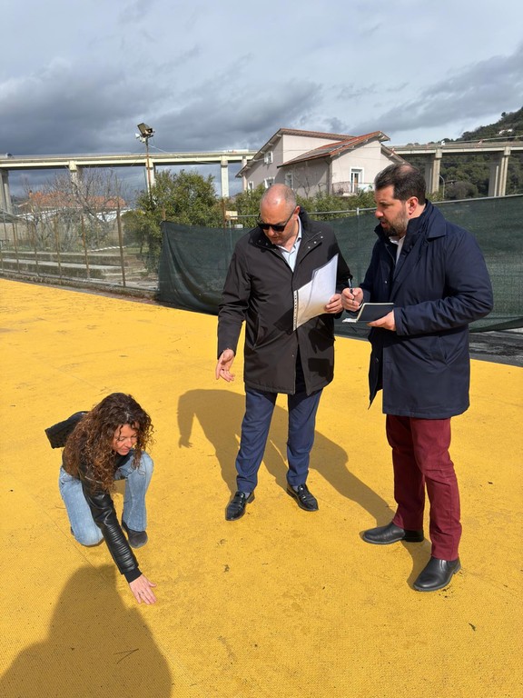 Sopralluogo dell'Amministrazione comunale di Vallecrosia al campo Zaccari per verificare lo stato dei lavori. Ieri mattina, infatti, il sindaco Fabio Perri e gli assessori Deborah Mognol e Mirko Valenti si sono recati nella struttura sportiva in via Braie per fare il punto della situazione.