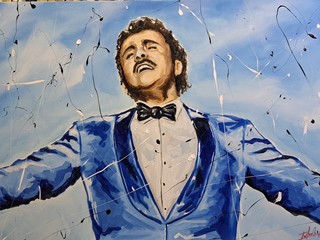 Anche quest’anno Luca Colombo, pittore di Ospedaletti, porta la sua arte al Festival di Sanremo. Per l’edizione 2026 ha scelto di rendere omaggio al cantante italiano più famoso al mondo, Domenico Modugno, con un dipinto dedicato a “Nel blu dipinto di blu”, il brano che nel 1958 trionfò al Festival e divenne un successo planetario, simbolo della musica italiana nel mondo.
