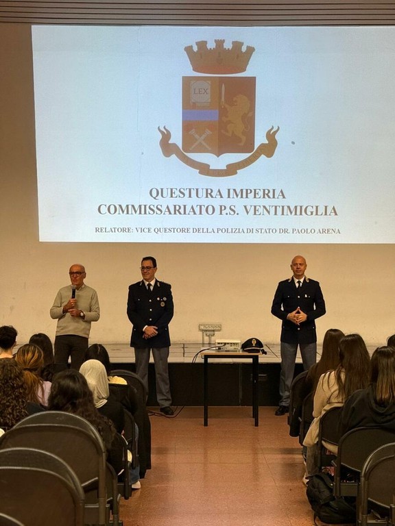 Nella giornata del 19 febbraio 2026, nell’ambito del progetto di educazione alla legalità promosso dalla Questura di Imperia per l’anno 2026, la Polizia di Stato ha incontrato gli studenti delle classi seconde del Liceo Statale Aprosio di Ventimiglia. L’incontro, tenuto dal Dirigente del Commissariato di Pubblica Sicurezza di Ventimiglia, Vice Questore Paolo Arena, ha affrontato i principali rischi che coinvolgono il mondo giovanile: bullismo e cyberbullismo, uso di sostanze stupefacenti, porto di coltelli e sfide estreme online.