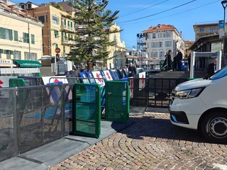 Ormai è solo questione di dettagli. Il centro di Sanremo si prepara a vivere i giorni più intensi dell’anno e nelle ultime ore il volto della città è cambiato definitivamente. Piazza Colombo è stata chiusa nel tratto da via San Francesco, mentre il Green Carpet è ormai quasi ultimato e pronto ad accogliere i protagonisti della settimana festivaliera.