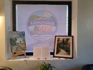 All'interno del point è possibile ammirare anche la mostra d'arte dell'artista bordigotto Marco Farotto, promotore della lista civica Bordighera Viva. "Il progetto espositivo si inserisce nel solco della tradizione artistica di Bordighera, città storicamente attenta al dialogo tra arte e territorio. Ospiteremo diversi artisti locali, il primo è Marco Farotto" - fa sapere il candidato sindaco Carlo La Vigna - "I dipinti esposti da Farotto sono un omaggio appassionato al Beodo, angolo dell’anima profondamente caro ai cittadini di Bordighera. In ogni tela le palme tornano come presenze vive, quasi custodi silenziose del paesaggio, mentre i colori, vibranti, intensi e ardenti, sprigionano un’esplosione di luce che avvolge lo sguardo, emoziona e restituisce tutta la poesia di quei luoghi amati. Iniziamo, quindi, mettendo in evidenza lo spirito del nostro gruppo: persone che, accanto all’impegno civico, portano competenze, sensibilità e percorsi professionali profondamente radicati nel territorio".