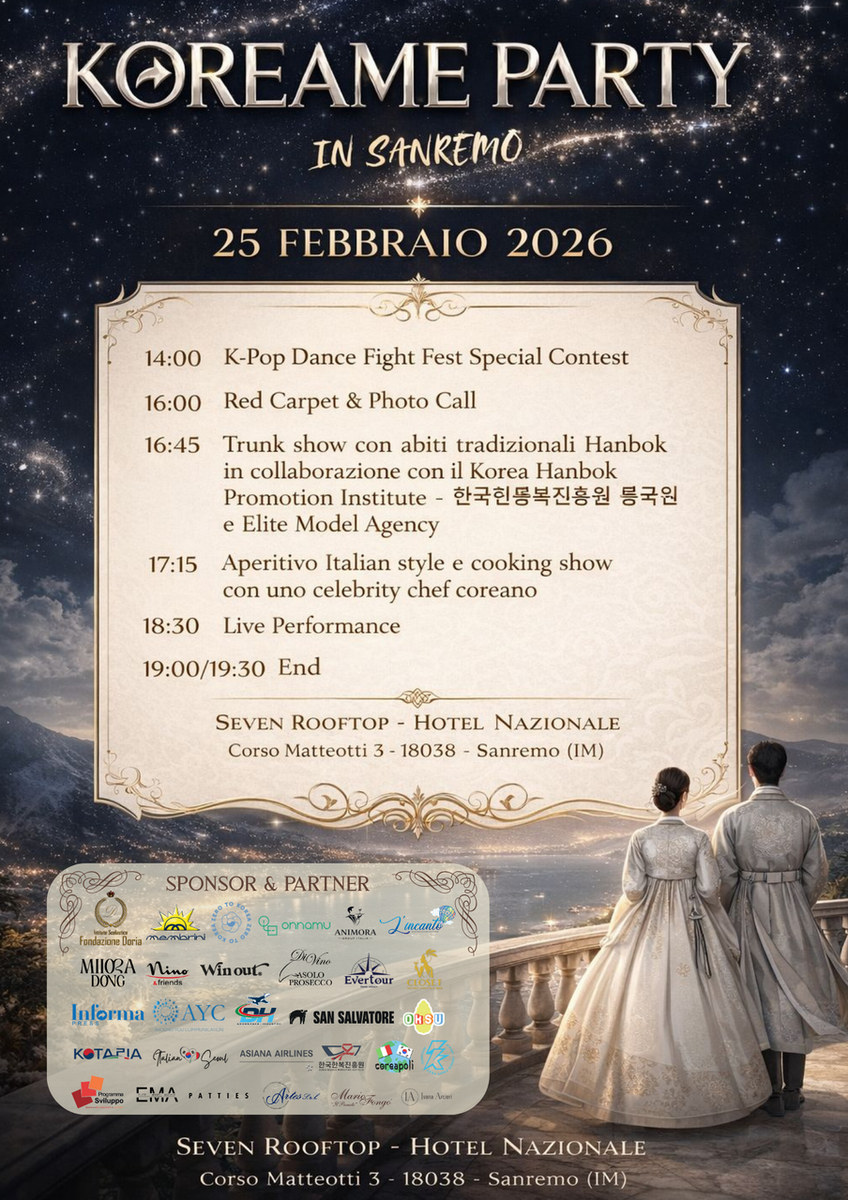Nel pieno della settimana più attesa dell’anno, Sanremo apre le porte alla cultura pop sudcoreana. Mercoledì 25 febbraio è in programma il KoreaMe Party, evento collaterale inserito nel calendario delle iniziative che animano la città durante il Festival, pensato come momento di incontro tra spettacolo, creatività e diplomazia culturale.