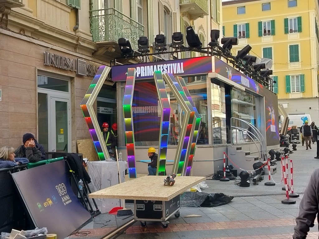 I luoghi più strettamente legati al Festival fuori dall'Ariston, come il Suzuki stage, il glass del Dopo Festival e l'Eni Carpet sono stati quasi ultimati: sulla via che sarà percorsa dai cantanti in gara sono infatti state montate parte delle illuminazioni, su cui sono già partite le prove in vista della sfilata di lunedì 23, riproponendo il gioco di luci già visto lo scorso anno, ma con delle variazioni estetiche che daranno un tocco di novità. Immancabile poi ovviamente il balcone di Generali.