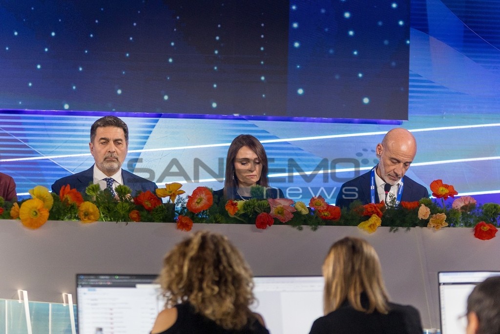 Non accettavo la conduzione di Sanremo perchè non mi sentivo pronta” e rivolgendosi a Conti grata gli dice: “Devo dire che Carlo Colti e la tua fiorentina con la tua professionalità, per me essenziale, la serenità che mi trasmetti mai sentita associata a Sanremo mi hai convinta a vivere questa esperienza. La prima volta – prosegue - avevo 18 anni ed ero più ingenua e innocente ed avevo paura. Questa è prima volta che mi risiedo su questa sedia dal '94, ma tutte le volte ho pronto il giusto farmaco. Ci vorrebbe un Carlo Conti per tutti noi a infondere sicurezza. L'ho sempre sognato quello che mi stai regalando Carlo e spero di essere all'altezza. In questi 30 anni mi sono preparata. Oggi devo tanto a Carlo. Sono emozionata nel senso più gioioso del termine. All'estero ho anche presentato altre manifestazioni, ma oggi finalmente posso farlo davanti ad italiani come me. Voglio dare gioia, emozione e divertimento, come anche mi ha chiesto Carlo. Voglio verificare cosa succederà alla fine di questo Festival soprattutto per quanto riguarda le canzoni e spero che ci sia una donna a poter viaggiare con la musica italiana nel mondo. In questa edizione ogni canzone è a sé ed è bello che ci sia stata ricerca sia sul suono che sui testi, nessuno si assomiglia. Sono sempre interessata a capire all'estero cosa pensano della nostra musica e Rai Play dà questa possibilità. Ascoltate e fateci sapere. La spontaneità alla fine è quella che verrà fuori davvero. Quando ci siamo visti a marzo con Carlo, ho chiamato subito Pippo Baudo presentandogli le mie remore e lui mi disse 'Stai ancora aspettando? Sei pronta da un po', vai tranquilla e fallo', è stato molto emozionante”.