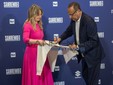 Insieme a lui questa sera la co-conduttrice Laura Pausini: "Sono emozionata nel senso più gioioso del termine"