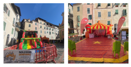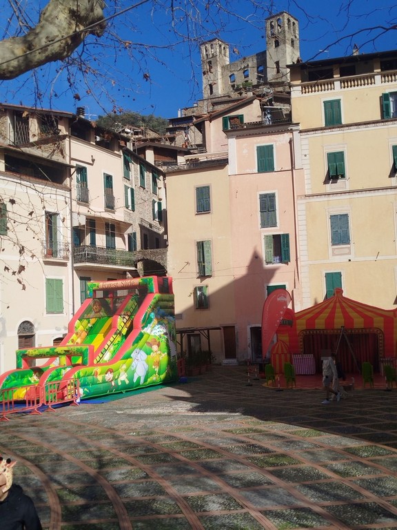 Gonfiabili, animazione, battaglia di coriandoli, pentolaccia e maschere a Dolceacqua. Il Carnevale dei bambini anima piazza Mauro.