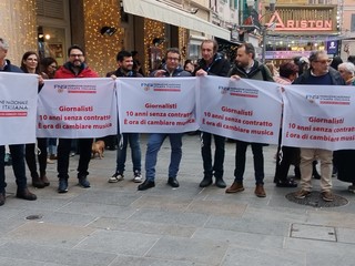 Al centro della mobilitazione, il duro stallo con gli editori della Fieg, che hanno continuato a respingere le richieste di adeguamento salariale avanzate dal sindacato, proponendo aumenti giudicati inaccettabili — circa 150 euro lordi in tre anni — oppure subordinandoli alla revisione di istituti contrattuali come ferie e permessi straordinari. Alla manifestazone hanno partecipato, oltre alla capofila Alessandra Costante della Fnsi, anche il presidente dell'Ordine ligure dei giornalisti Tommaso Fregatti e il presidente dell'Associazione giornalisti liguri Milena Arnaldi, affiancata dal segretario Matteo Dell'Antico, oltre a diversi esponenti della stampa locale.